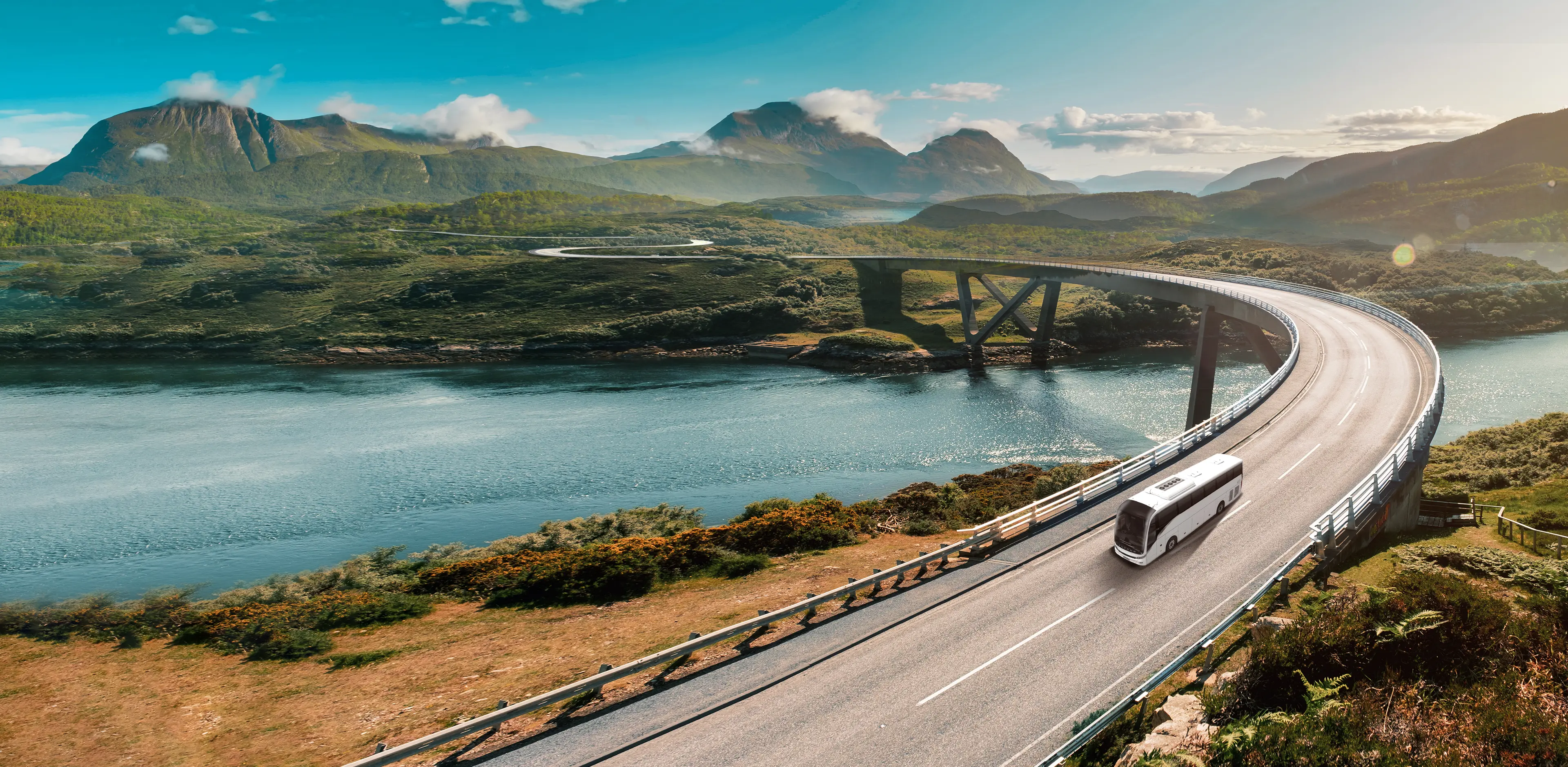 Uma solução audiovisual imersiva com dois ecrãs grandes HD de 22 polegadas (frontal e central) e 18 altifalantes de alta qualidade torna cada viagem memorável.